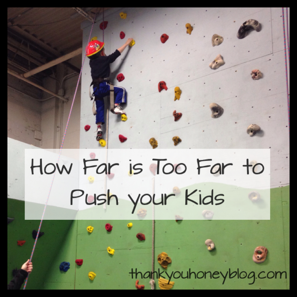 I think a little pushing is OK, but honestly, I think we underestimate who are kids really are, or expect them to be someone else. So, we push them to do what we THINK they should do. My daughter recently wanted to stop ballet because she just wanted to try too many other things. I wrestled with whether or not to “make” her do it, but realized, it was mostly for the joy it was brining ME watching her dance, and not for the joy it was bringing HER. Great post. There is a rock climbing place being built really close to my house, and I think I’m going to sign my daughter up. She’s a little daredevil too. 🙂