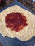 Put 1/4 to 1/2 cup of jam in the center of the dough